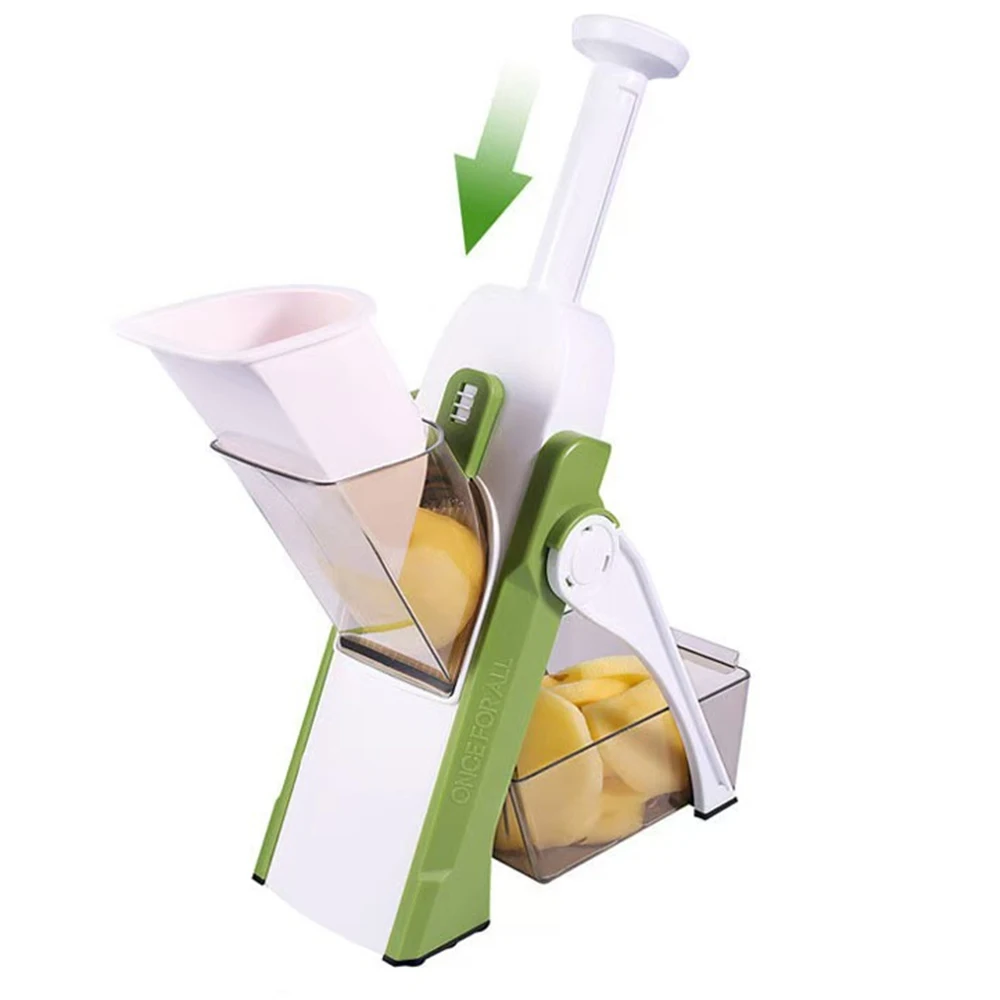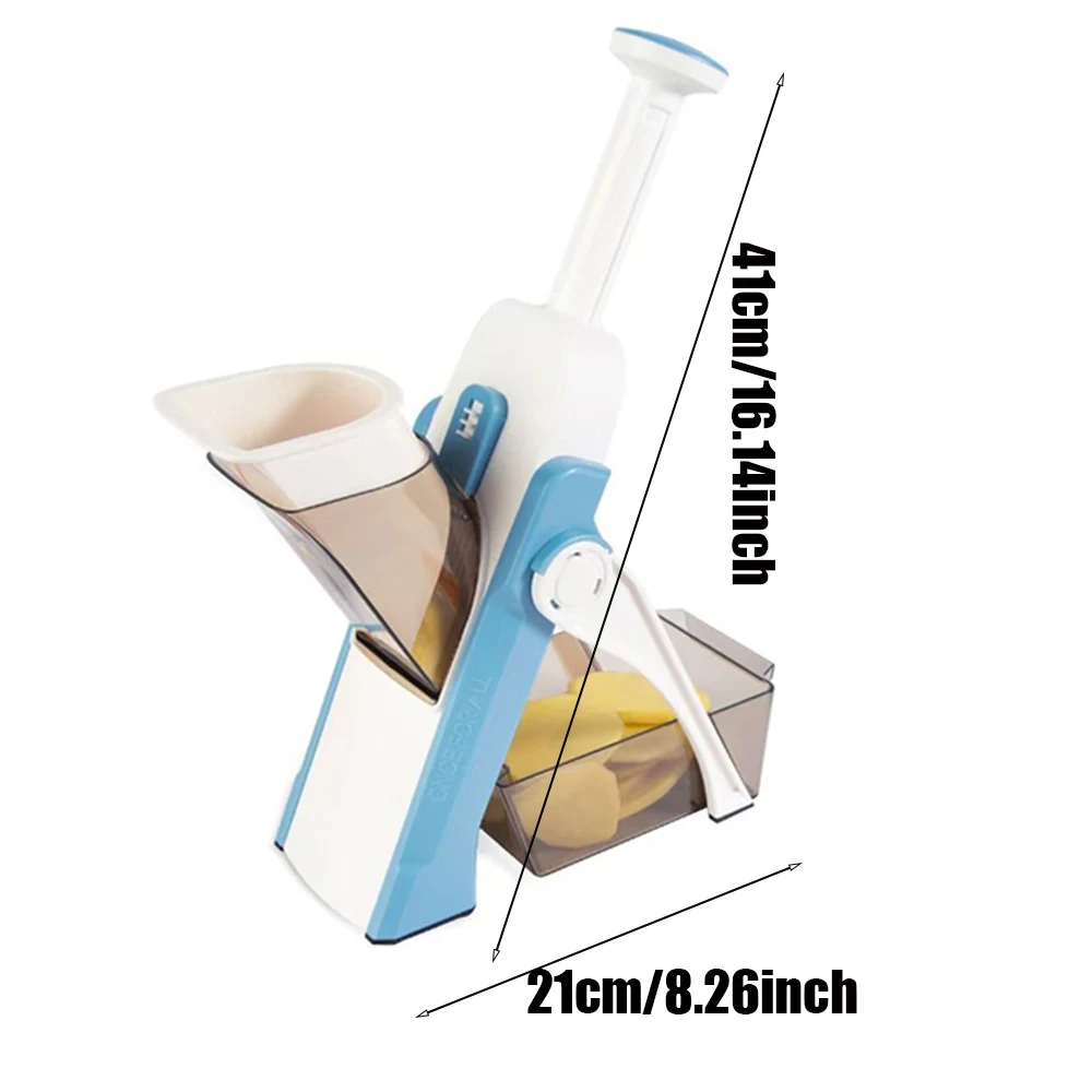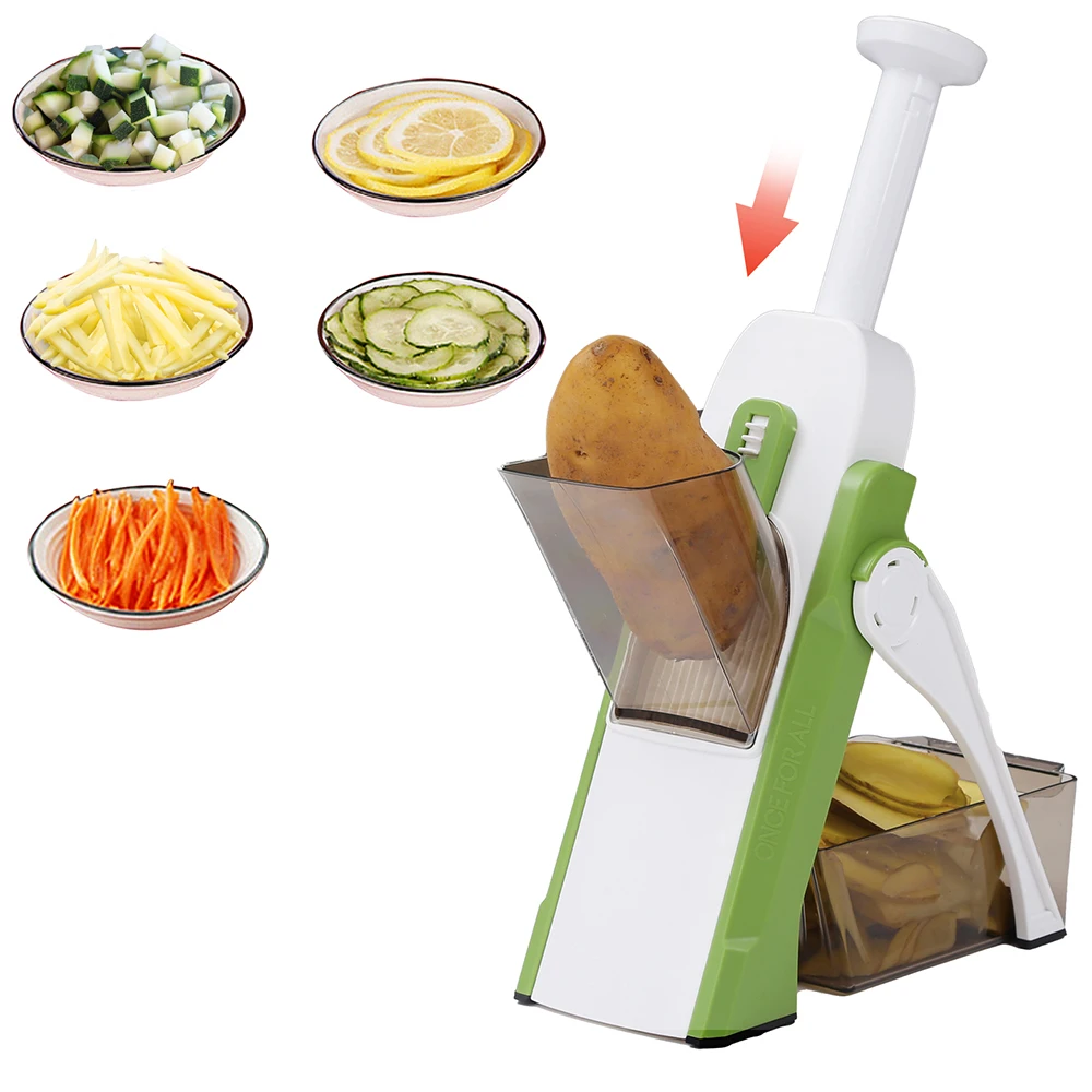 4.Space-Saving Design:The compact design of this vegetable slicer makes it an ideal addition to any kitchen, regardless of size. Its small footprint allows it to be stored easily in a drawer or cupboard, saving valuable counter space. Moreover, the sleek design adds a modern touch to any kitchen decor, making it both a practical and aesthetically pleasing tool.